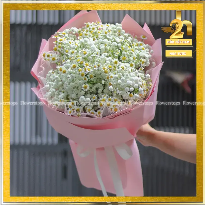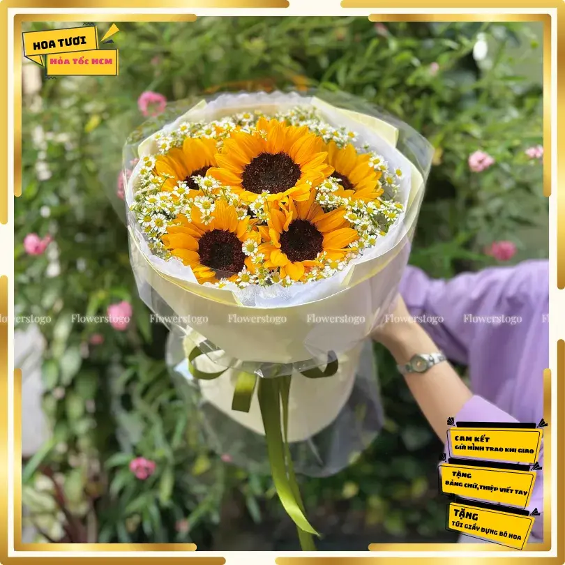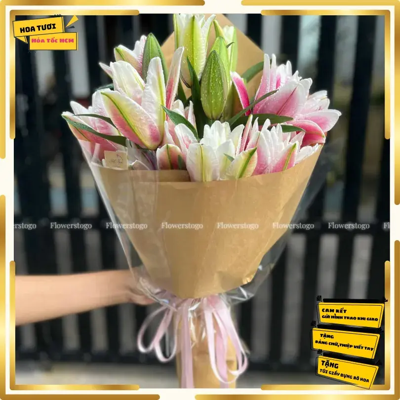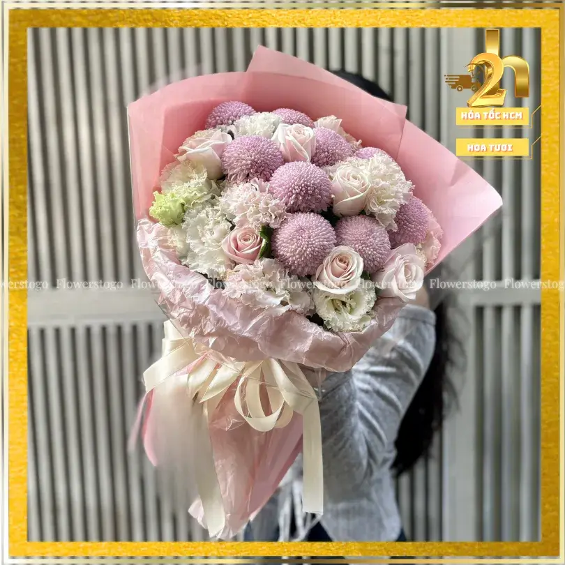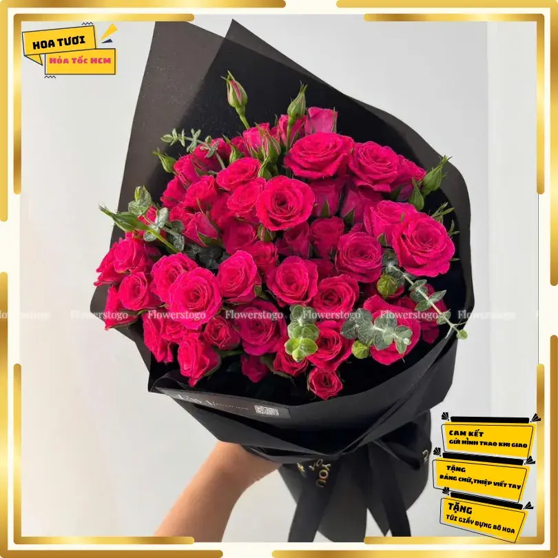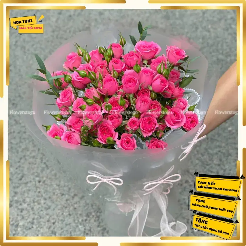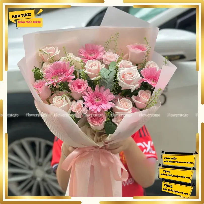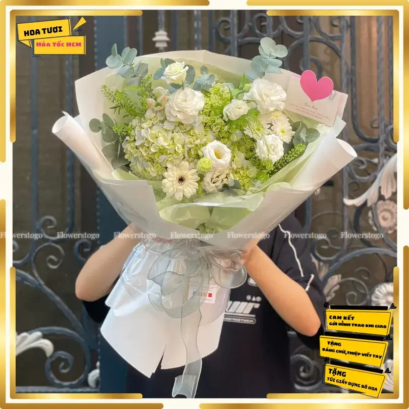 Tất cả sản phẩm đều sử dụng hoa tươi nhập mỗi ngày, cắm tay tỉ mỉ bởi florist chuyên nghiệp, giao nhanh 2H tại TP.HCM. Bó hoa đượ
