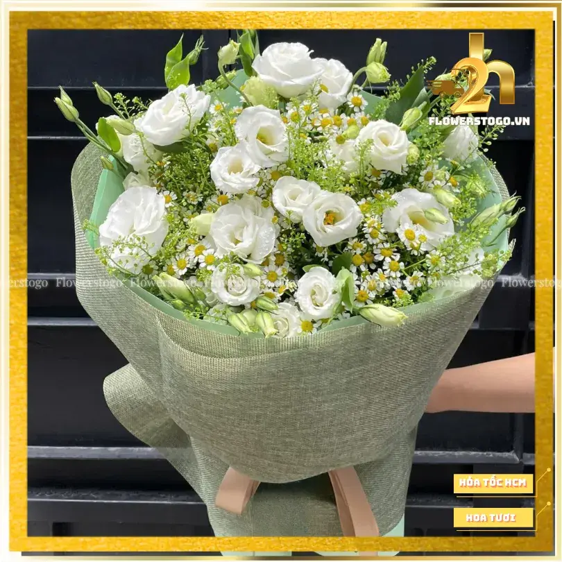 Tất cả sản phẩm đều sử dụng hoa tươi nhập mỗi ngày, cắm tay tỉ mỉ bởi florist chuyên nghiệp, giao nhanh 2H tại TP.HCM. Bó hoa đượ…
